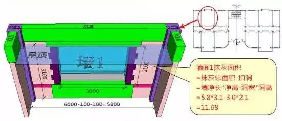 很显然,这里没有扣除踢脚所占面积,墙高只计算到吊顶底。