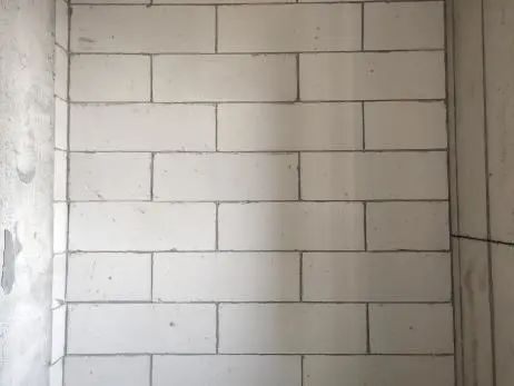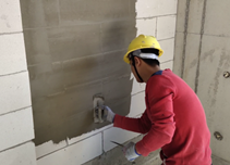 工艺流程及操作要点 基层清理、洒水→挂耐碱玻纤网格布→高强度聚合物砂浆打底→高强度胶泥找平(填充墙为页岩砖时找平,为蒸压加气块时免找平)→高强度胶泥滚浆拉毛 砌筑时,灰缝要横平竖直,上下层十字错缝,灰缝饱满,将溢出的砂浆或胶泥清理干净。填充墙体的垂直度控制在5mm内,平整度控制在8mm内。 蒸压加气块砌筑 厨房、卫生间薄抹灰前需将基层表面的灰尘、污垢、松散颗粒、油污等清理干净。基层清理干净后洒水湿润。 基层洒水 底层粉刷材料使用WL-300干粉界面剂和水按配合比1:0.25进行搅拌,制成高强度聚合物砂浆。一次投料量应在规定的时间内用完。初凝后料浆不得再次加水搅拌使用。面层滚刷拉毛用的是高强度胶泥,是使用聚乙烯醇和水按配合比1:23熬制成胶浆,再把胶浆和水泥(普通硅酸盐水泥)按配合比1:1.1倒入桶中进行搅拌,使料浆达到合适的稠度,静置5分钟成,视其和易性。 高强度聚合物砂浆 高强度胶泥 在填充墙和砼构件交接部位挂耐碱玻纤网格布进行加强,接缝处两侧各150mm宽,抹上高强度聚合物砂浆。交接部位抹灰要平整,不能出现高低不平现象。 粘贴耐碱玻纤网格布 用刮板将高强度聚合物砂浆直接批抹在墙体上,粉刷厚度为1mm。根据需要随搅随用,禁止掺入其他添加剂,已搅拌好的砂浆必须在2小时内抹完。不得多备料,造成浪费。 高强度聚合物砂浆打底 高强聚合物砂浆打底效果 由于页岩砖砌筑后的垂直平整度不如蒸压加气块的效果好,所以需要加一道找平层1mm厚。待底层高强度聚合物砂浆达到一定强度后,才可进行找平层施工。挂抹时要一刮板紧接一刮板,接头不得留槎,用铝合金大杠刮平收头,收头要干净利落。挂抹时应做到凸处薄刮,凹处厚刮。 高强度聚合物砂浆找平 待防水涂料施工完成后,进行墙面面层滚浆拉毛施工工艺。用滚刷均匀滚涂,确保毛刺长度适合均匀。厚度控制在2-3mm。 高强度胶泥滚浆拉毛 面层滚浆拉毛效果 综合效益 经人工费和材料费计算,传统抹灰综合单价30元/㎡,采用打底滚浆拉毛施工工艺综合单价21元/㎡元,如下表所示。 厨房、卫生间传统抹灰和薄抹灰经济效益分析表 经测算,本工程厨房卫生间采用此薄抹灰新工艺取代传统水泥砂浆抹灰,该楼节约费用约6.5万元,该工程节约费用约48万元。 通过分析对比,采用薄抹灰工艺大大缩短终凝时间和养护时间,节省工期,从而为业主和总包节省可观的时间和费用,尤其是工期紧的项目。 空鼓开裂比较:传统抹灰容易产生大量空鼓开裂现象,需反复维修,浪费人工材料。采用薄抹灰施工工艺表面观感好,无空鼓开裂现象,免去后期人工修补费用及材料费。 传统抹灰:干混砂浆离析现象普遍,安全文明不好控制。包括施工阶段,养护阶段、维修阶段等。 薄抹灰工艺:材料绿色环保,可循环使用,随搅随用,施工环境好,浪费少。 成型后的墙面效果比传统水泥砂浆粉刷空间大2公分,小业主得到了真正的实惠,且墙面整洁观感质量好。 为了防止此墙面事后小业主入住装修而产生的质量风险,我司做了如下的试验:在其墙面上铺贴面砖,龄期后检查面砖无空鼓现象,然后进行破坏性试验。 第一步,凿除面砖,只有面砖脱落下来,但面砖的粘结层仍与墙面牢牢粘结,未有因墙面面层不牢而跟着落下来的现象。 第二步,凿除面砖的粘结层,只有粘结层被凿下来,而墙面的面层扔未有松动而被凿下来的现象。 通过对墙面的破坏性试验,厨卫间墙面使用新材料、新工艺施工,进一步确认了比传统的施工无论是质量和效果都是先进的技术,值得广泛推广和运用。 破坏性试验对比
