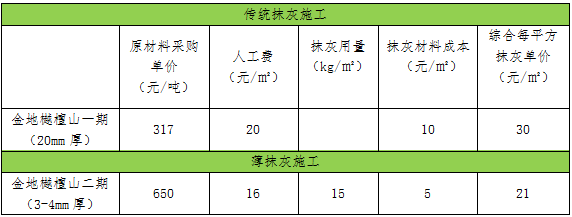 江苏南通二建集团在工程中推广应用新工艺,厨卫间采用薄抹灰新工艺,取代传统水泥砂浆抹灰,效果显著:(1)工序简单、工期短。终凝时间和养护时间大大缩短,节省工期,从而为业主和总包节省可观的时间和费用,尤其是工期紧的项目。(2)无空鼓开裂现象,免去了后期人工修补费用。(3)成型后的墙面效果比传统水泥砂浆粉刷观感质量好,而且增大了净面积,小业主得到真正的实惠。(4)现场安全文明易控制。材料绿色环保,可循环使用,随搅随用,施工环境好,浪费少。