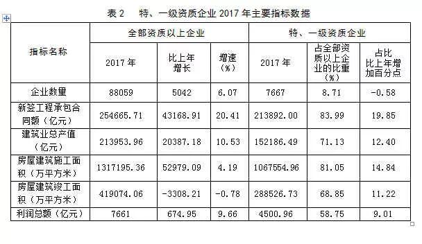 2 建筑业特、一级资质企业是指住房和城乡建设部批准的具有特级和一级资质等级的城乡各种经济类型的建筑业企业。