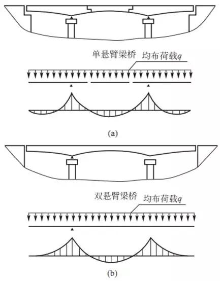 受力:悬臂梁端负弯矩的产生,减小跨中正弯矩,减少跨中建筑高度