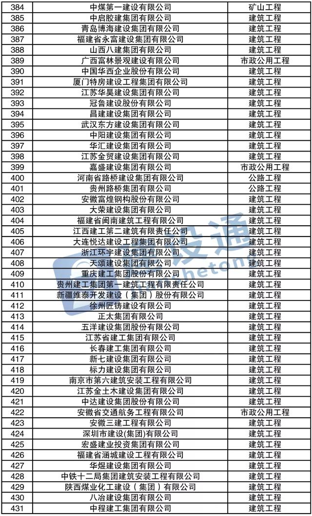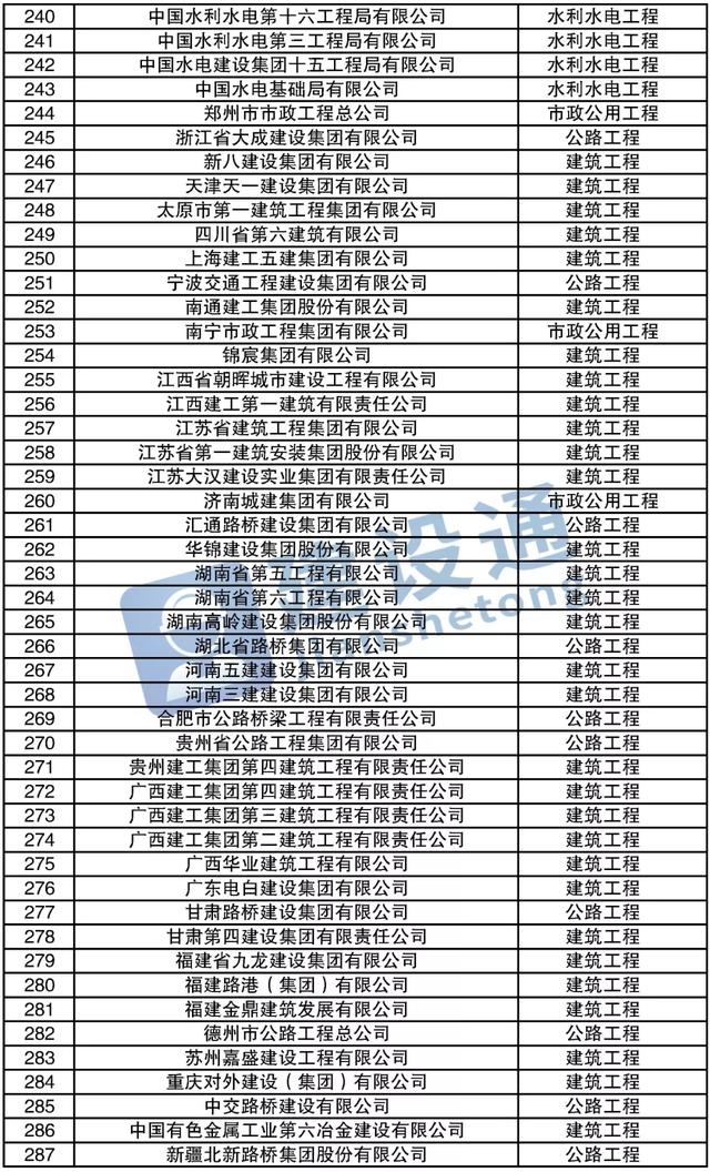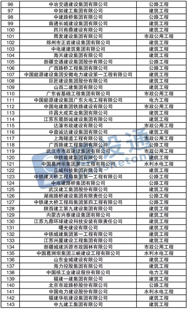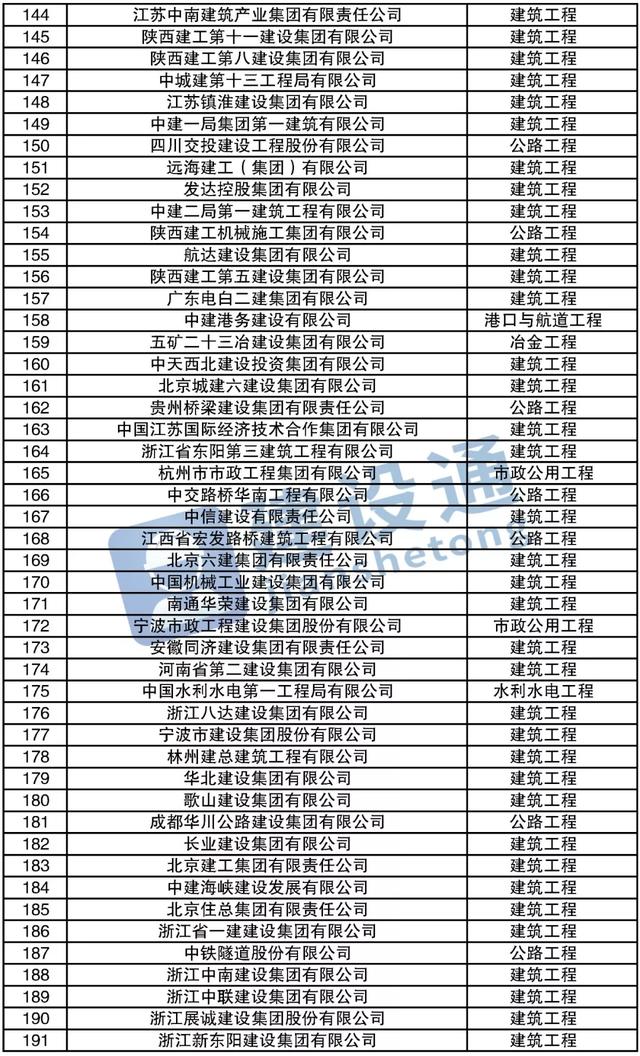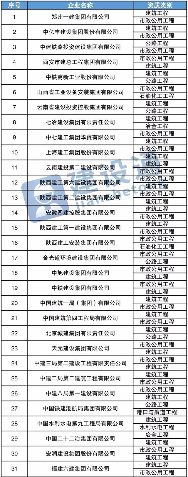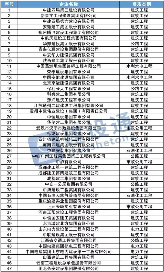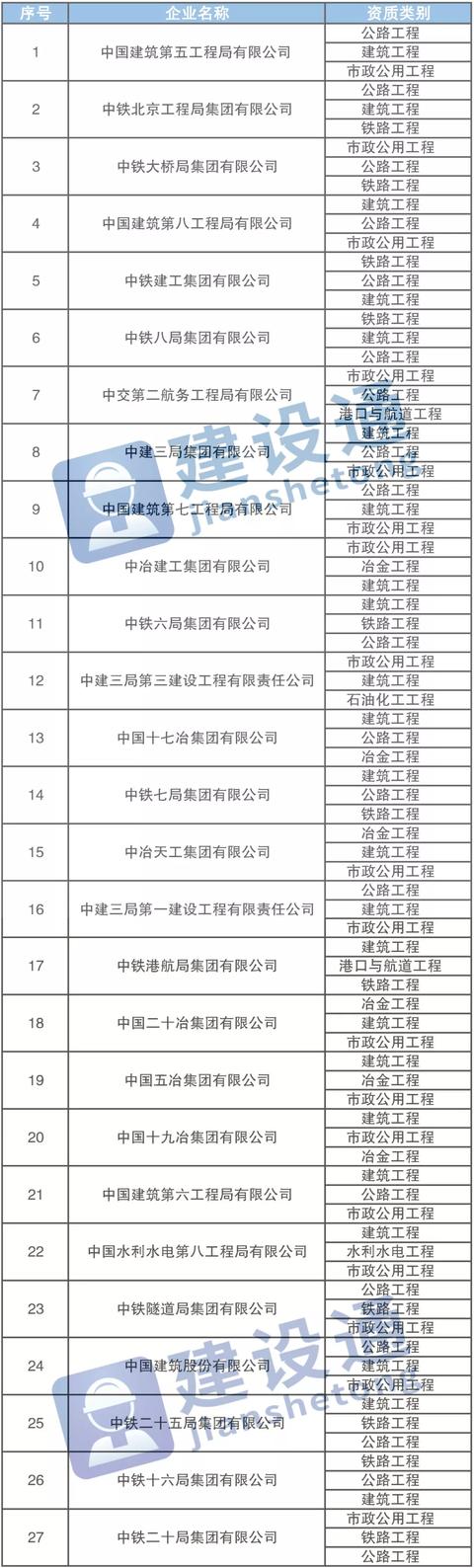 下面由小编带大家盘点一下那些拥有建筑工程总承包特级资质的企业名单: