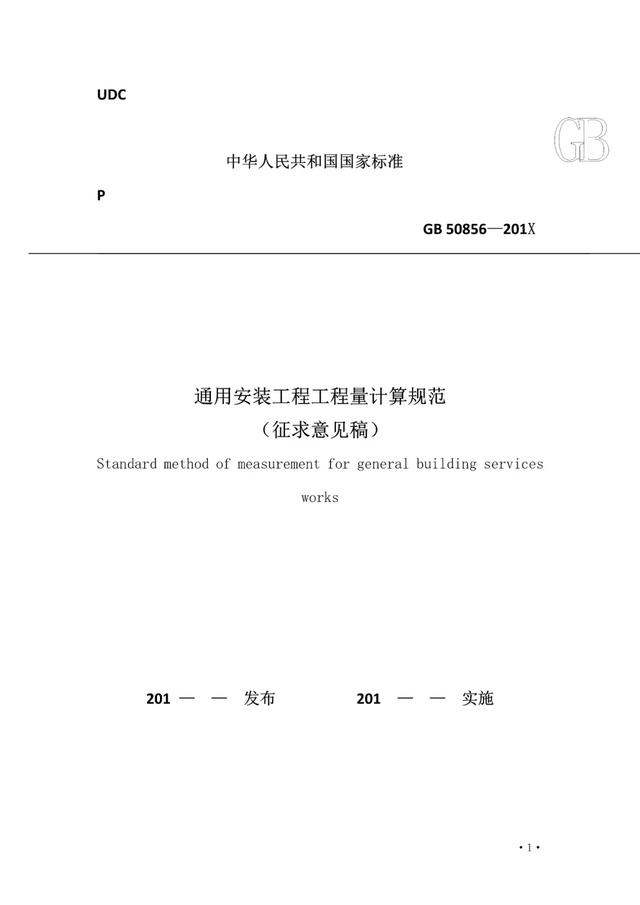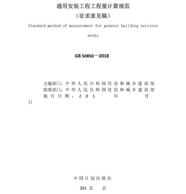 1.《通用安装工程工程量计算规范》(征求意见稿)