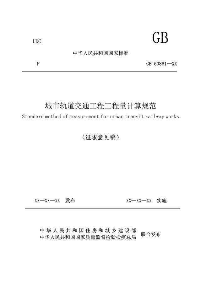4.《城市轨道交通工程工程量计算规范》(征求意见稿)