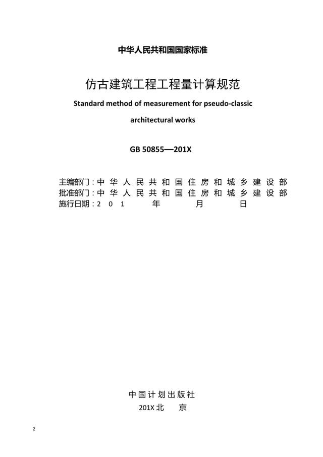 5.《仿古建筑工程工程量计算规范》(征求意见稿)