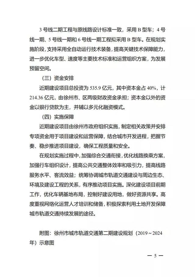 日前,发改委批复《江苏省徐州市城市轨道交通第二期建设规划(2019-2024年)》,原则同意徐州市城市轨道交通第二期建设规划,建设3号线二期、4号线一期、5号线一期、6号线一期等4个项目,规划期为2019-2024年,总投资535.9 亿元。