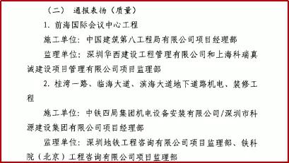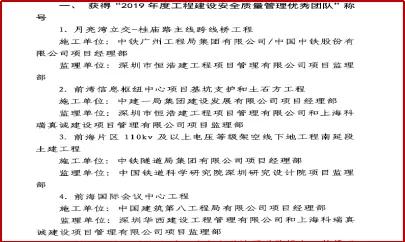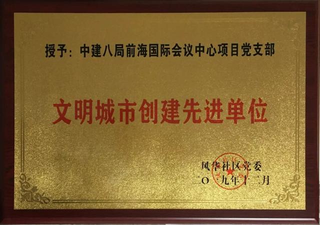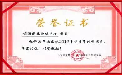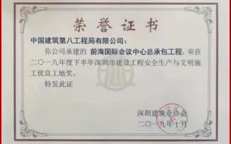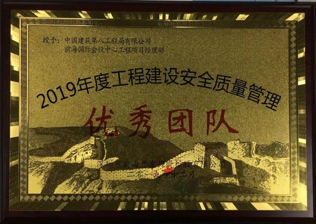 2019年项目获得深圳市安全生产与文明施工优良工地,在中建八局华南区域综合检查中表现优异、排名第一,并在前海自贸区年度综合评比中被评为质量安全优秀团队。