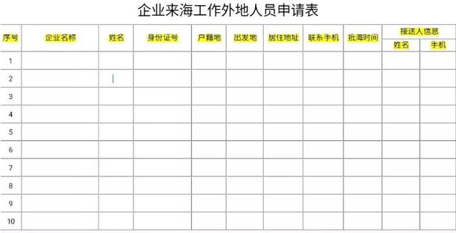 2.自即日起,各区镇每天下午2点前申报辖区内企业外地来海人员名单和相关信息(见附表),并安排专人到卡口负责接送,人员名单同步上报。各区镇一律按照市疫情防控指挥部企业防控组筛查通过的名单信息出具《来海复工人员准入证》,卡口凭证放行,由接送人员接回后按照不同类别,落实集中隔离措施。