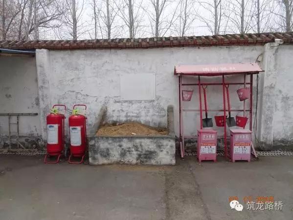 驻地内消防设施应满足《建设工程施工现场消防安全技术规范》GB 50720-2011的有关规定,在适当位置设置临时室外消防池和消防砂池,配置相应的消防安全标识和消防安全器材,并经常检查、维护、保养。