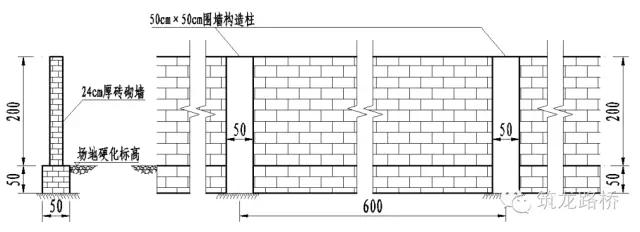 新建临时驻地围档、围墙采用通透式防护栅栏、彩钢(塑)板或24cm厚的砖砌围墙。