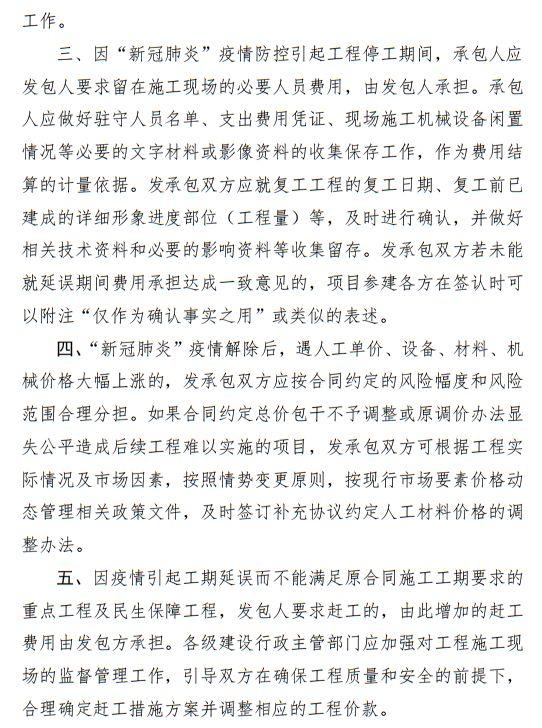5、因防疫导致的工程延误,应将合同约定的工期顺延。同时对工程价款进行调整。