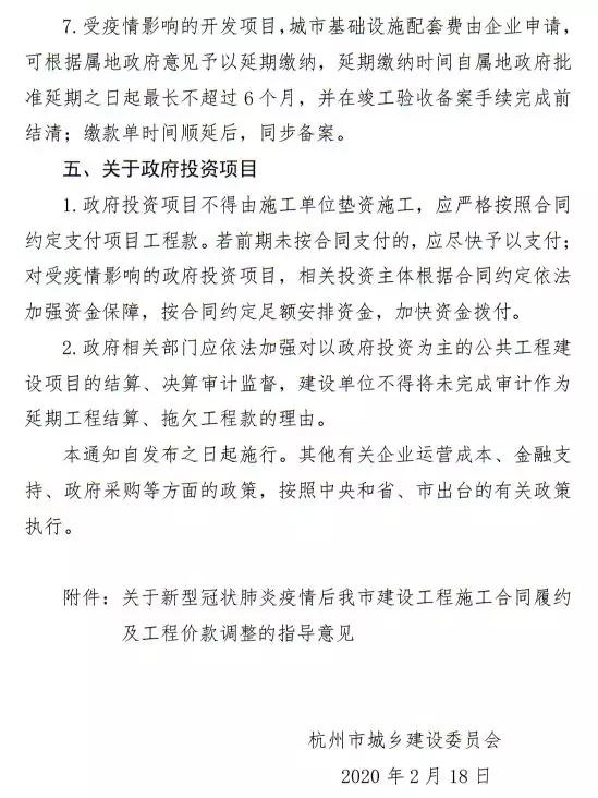 2月18日,杭州市建委发布《关于全力做好疫情防控支持建筑业发展的通知》,全力推动建企和在建项目复工复产。主要内容如下: