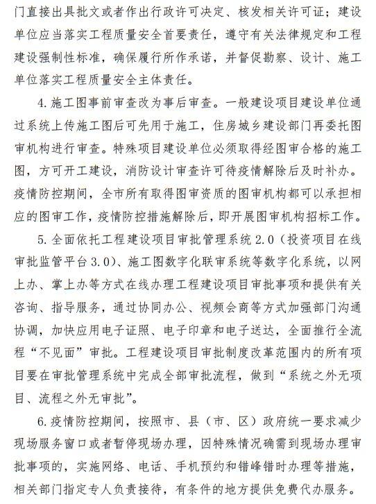 8、一般建设项目,防疫期间可先行开工建设,疫情结束后再补办人防、施工许可等手续。