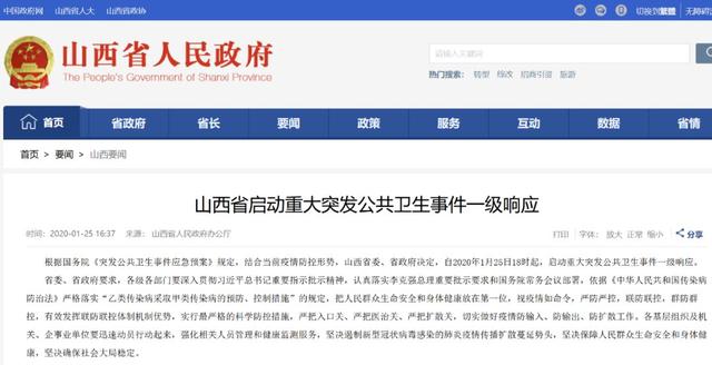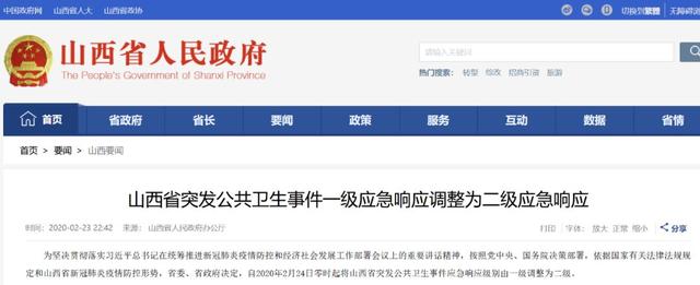 三、山西2020年2月24日起调整为二级响应(1月25日启动一级响应)