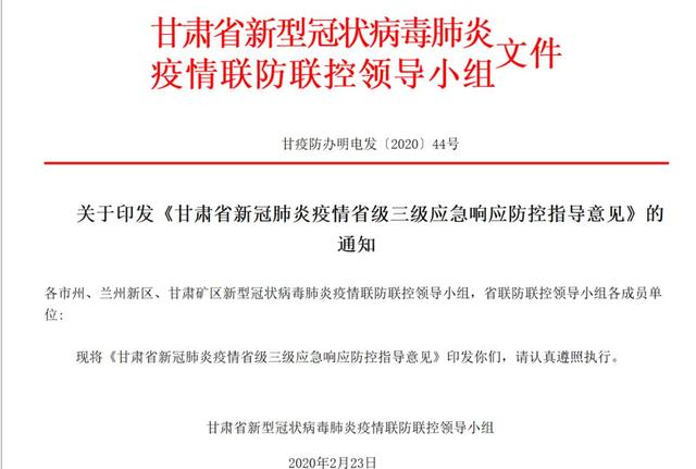 六、甘肃2020年2月21日起调整为三级响应(1月25日启动一级响应)
