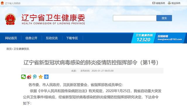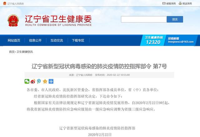 五、辽宁2020年2月22日起调整为二级响应(1月25日启动一级响应)