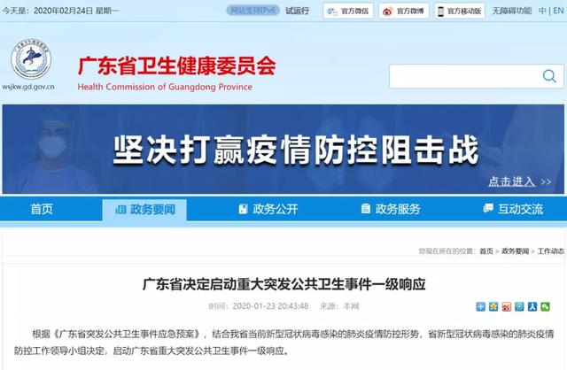 一、广东2020年2月24日起调整为二级响应(1月23日启动一级响应)
