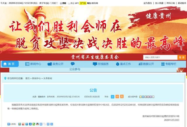 四、贵州2020年2月23日起调整为三级响应(1月24日启动一级响应)