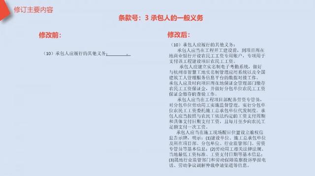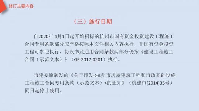 杭州市房屋建筑工程和市政基础设施工程施工合同专用条款(示范文本)修订后主要内容有哪些?与之前的有什么不同?何时开始施行?