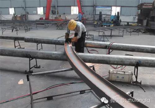 ①按照隧道钢拱架总长一次下料到位,并整体冷弯成型。