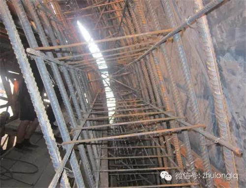 使用卡槽定位主筋纵向间距,并焊接水平构造钢筋固定