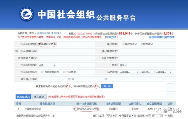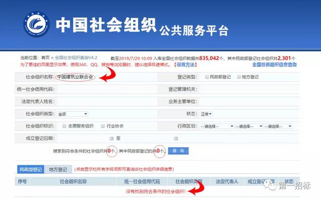 3、如上图示,如果是合法组织,会有登记记录,并有“统一社会信用代码”等信息;如是未经登记的非法组织,则无信息记录。