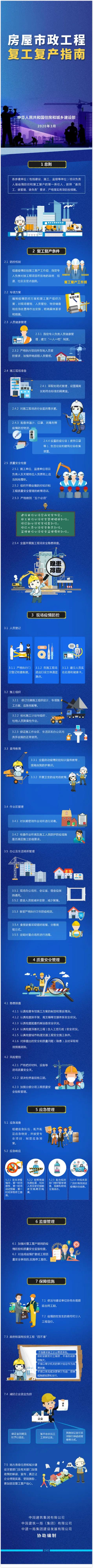 为统筹做好新冠肺炎疫情防控和工程质量安全工作,指导各地建筑业企业稳步有序推动工程项目复工复产,我部制定了《房屋市政工程复工复产指南》,现印发你们,请结合实际参照执行。