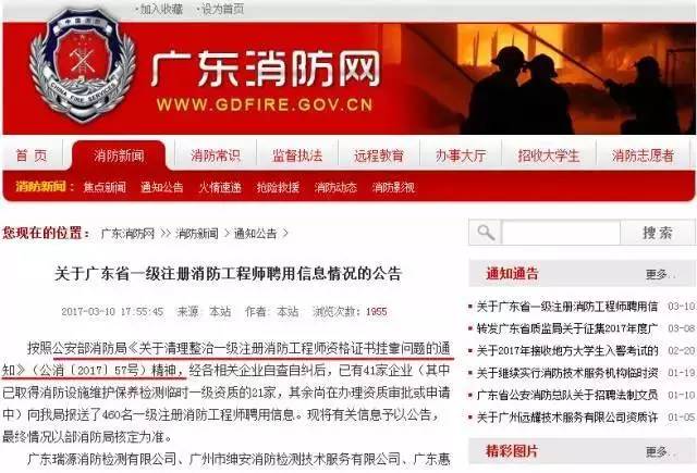 1、广东:《关于广东省一级注册消防工程师聘用信息情况的公告》