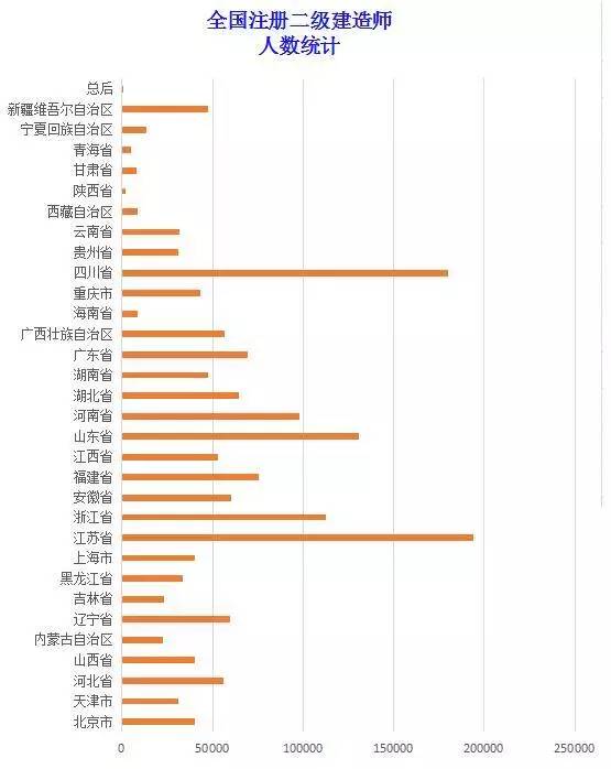 (仅江苏、浙江、北京3地的注册一级建造师,就占到全国总人数的近30%。)