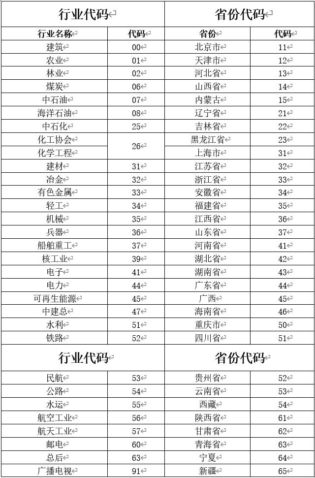 (五)第7、8位为行业管理机构代码,取值见代码表。