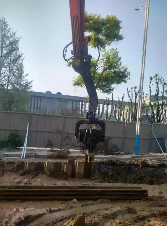 基坑回填后,要拔除钢板桩,以便重复使用。拔除钢板桩前,应仔细研究拔桩方法顺序和拔桩时间及土孔处理。否则,由于拔桩的振动影响,以及拔桩带土过多会引起地面沉降和移位,会给已施工的地下结构带来危害,并影响临近原有建筑物、建筑物或地下管线的安全,设法减少拔桩带土十分重要,目前主要采用灌水、灌砂措施。