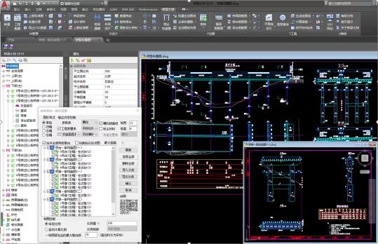 面向工程:以数据库技术为基础,实现面向整个工程(整条路线)的桥梁设计。利用数据库全面管理工程、项目和图纸,批量定制全线的标准图纸,批量生成桥型图、构造图,批量处理全线的图纸,生成全线桥梁的图纸清单,进行全线桥梁的工程量统计。