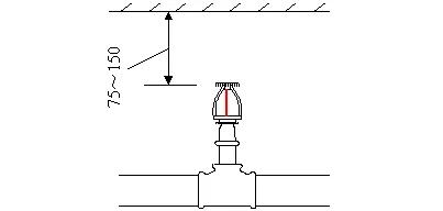 2)直立型、下垂型标准喷头溅水盘与顶板的距离为75~150mm。
