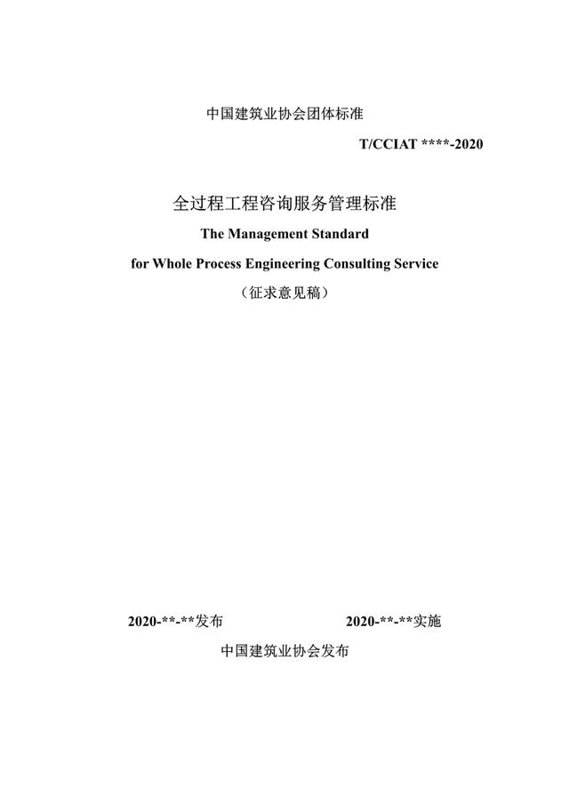 1、《全过程工程咨询服务管理标准》(征求意见稿)