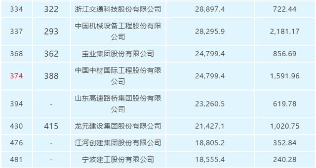 从排名来看,入围500强的中国建企中,中国建筑工程总公司、中国交通建设股份有限公司这两家企业同去年相比排名持平,中国中铁股份有限公司、中国铁建股份有限公司、中国电力建设股份有限公司等企业的排名都有不同程度的上升,其中四川路桥建设集团股份有限公司上升排名较大,同去年相比上升了31名,目前位于排行榜第195名 。