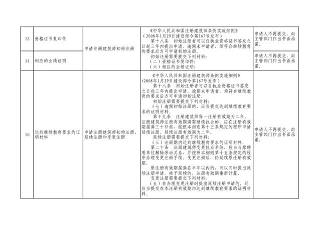 初始注册:不再提交资格证书复印件、相应的业绩证明、聘用单位资质证书副本复印件,改为书面承诺。