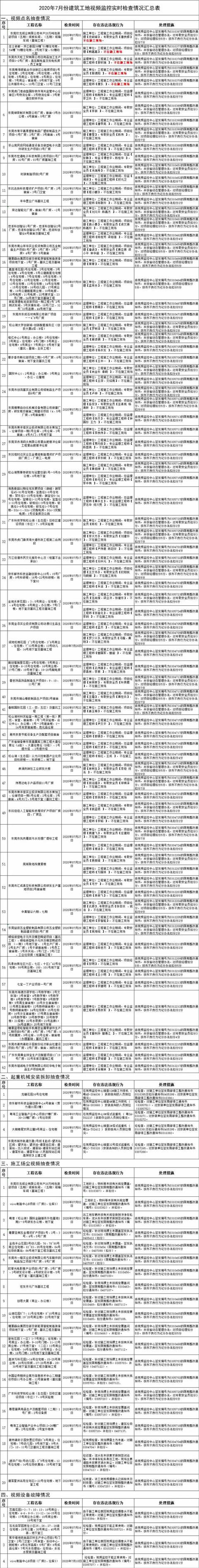 关于2020年7月建筑工地视频监控实时检查情况的通报