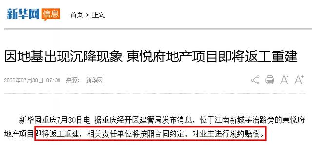 据重庆经开区建管局发布消息,位于江南新城茶涪路旁的東悦府地产项目即将返工重建,相关责任单位将按照合同约定,对业主进行履约赔偿。