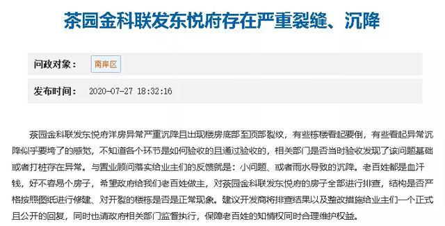 ……,建议开发商将排查结果以及整改措施给业主们一个正式且公开的回复,同时也请政府相关部门监督执行,保障老百姓的知情权同时合理维护权益。