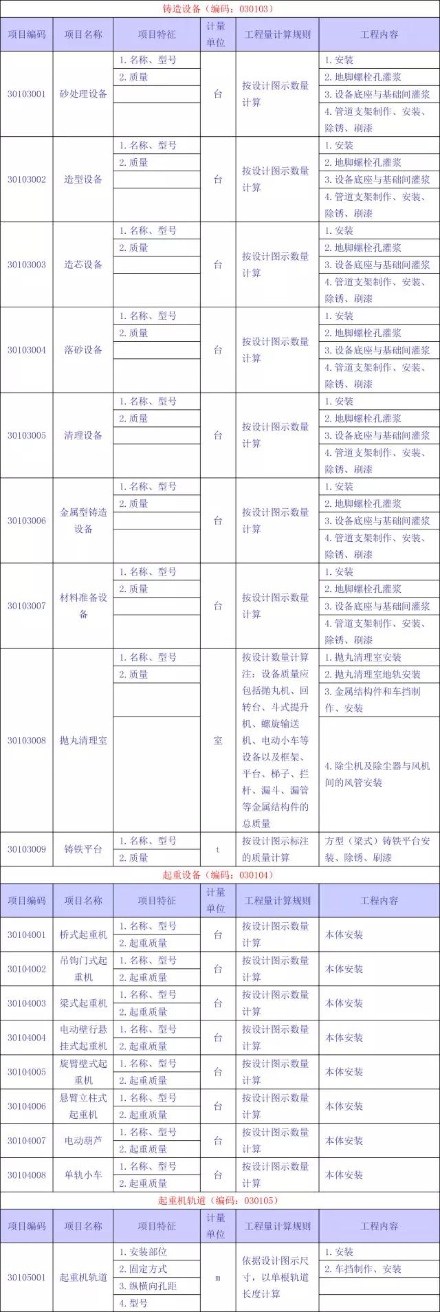 安装工程量清单项目设置及工程量计算规则,包括切削设备,锻压设备,铸造设备,等工程量清单项目设置、工程量计算规则及工作内容等,供大家参考!