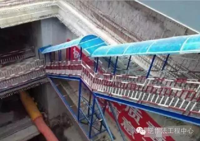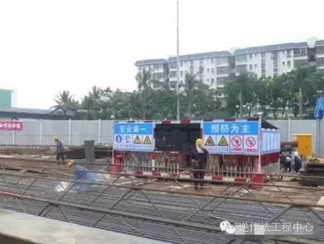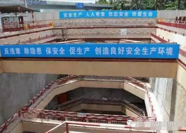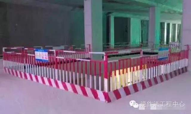 别以为车站开挖完成就告一段落啦,结构施工中也要秉承:做人有事有终,做事有头有尾。车站结构施工工程也要标准化施工,预留洞口,这可是地下世界通往光明世界的枢纽,醒目醒目再醒目就没有错啦。预留洞口临边安全防护多采用格栅式防护栏杆、红白油漆是标配,悬挂安全警示标志也是必备。