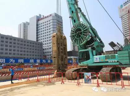 导向墙完成后,成槽机大显身手来施工地下连续墙啦。成槽机长长的手臂直伸入20到30m深的地下,说时慢那时快,地质情况好时,3天2幅槽段,速度是杠杠的。这当然还要归功于我们技术一流的操作人员啦,别忘了人家是持证上岗的,当然还有作业时旁站指挥的专门安全人员啦。另外我们的防护也是立马跟上,为防止周边安全隐患,成槽机作业半径内采取铁马+盖板防护。