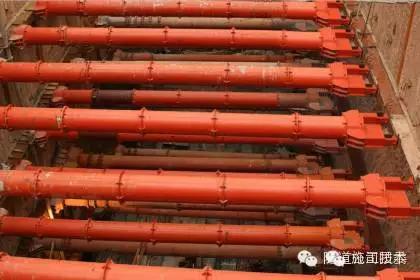连续墙保护着进行约200m长的大型基坑开挖时,需要在基坑壁加上水桶粗的钢支撑,水平、垂直距离每隔3m一道,牢牢撑住基坑两侧,才可以让我们的地下空间牢不可破。钢支撑随挖随撑、严禁超挖、钢围檩与地连墙须密贴。钢支撑的托架、防脱落钢丝绳保障支撑稳固、安全。钢支撑吊装作业时,作业半径内严禁人员位于下方,并设专人指挥。