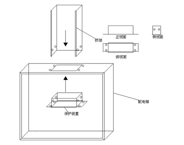 使用连接件安装桥架与配电箱,连接件从配电箱、柜的安装孔插入桥架内,保护装置的保护板和固定板上设置若干螺栓孔。用螺栓将连接件和桥架及配电箱、柜固定在一起,保证连接安全可靠。