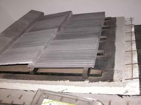 2、预留钢筋及其与屋面板接触处涂刷聚氨酯