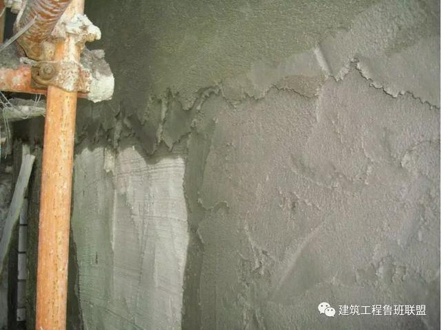 基面上的甩浆层粘结力不足,低于抹灰砂浆的粘结强度,而成为墙面抹灰层内的被动粘结层。