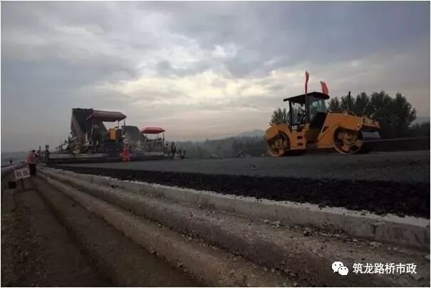 (12)沥青上、中面层施工过程中,要安排专人紧跟在摊铺机后用矿泉水瓶向已完工的面层上浇水,并观察渗水情况,以便及时通知拌合站进行施工配合比的调整。