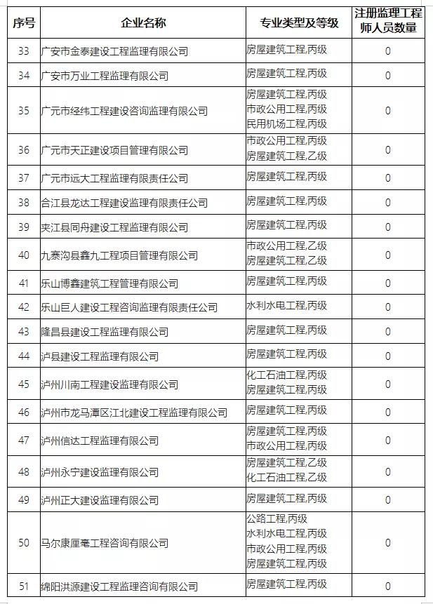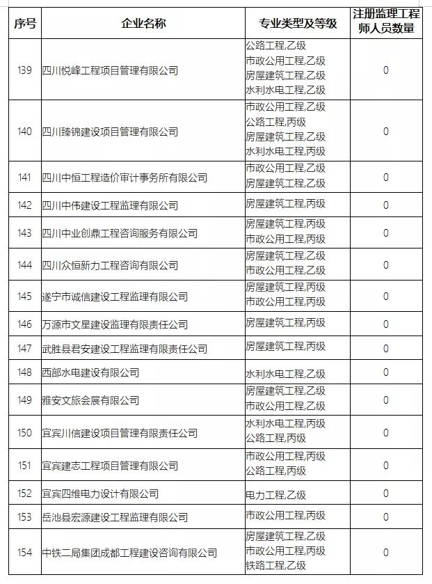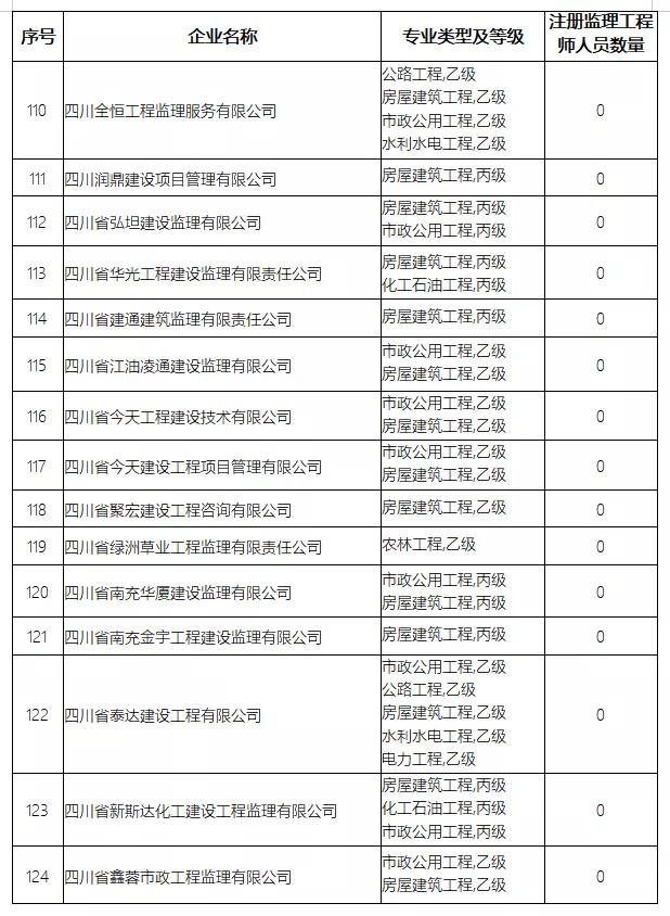 11月4日,四川省住建厅《关于2020年监理企业资质动态核查结果的通报》: