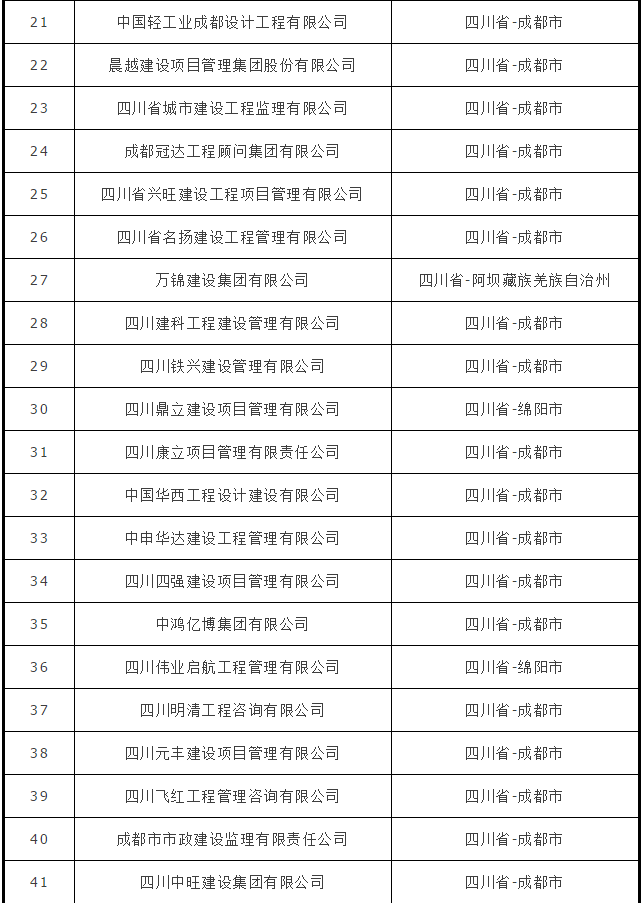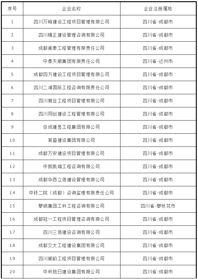 截至2020年11月18日,全国工程监理综合资质企业数量为233家,分布于26个省(直辖市)。其中四川地区企业占比最多,达到43家;第二位为河南省24家;第三位为浙江省23家,有18个省份的企业数量为个位数,贵州省、福建省、吉林省、甘肃省均只有1家工程监理综合资质企业。