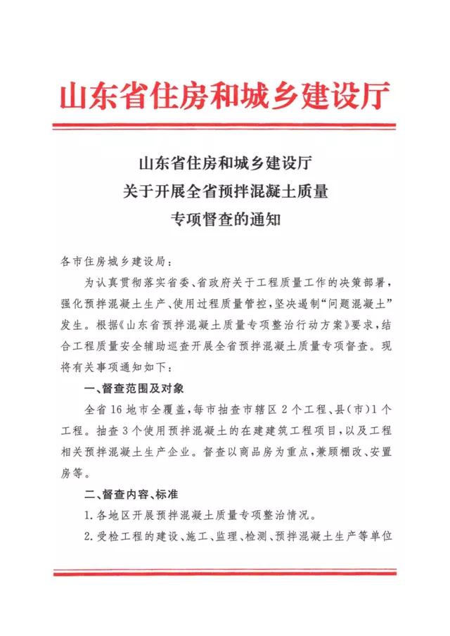 山东省住房和城乡建设厅于11月6日出台《山东省预拌混凝土质量专项整治行动方案》,在全省范围开展全面的专项整治行动。